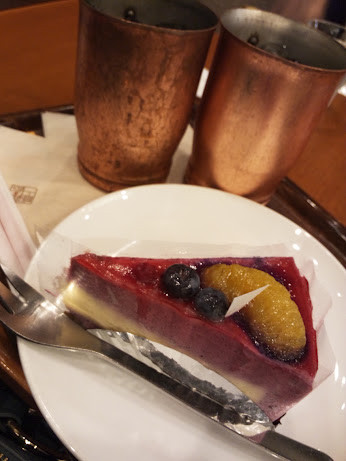 アイスコーヒーとカシスのケーキをお母さんと半分ずつして食べました。♯♪
